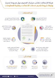 هيئة الاتصالات تدعو العموم لتقديم مرئياتهم حول مسودة وثيقة شروط تقديم خدمات الاتصالات وتقنية المعلومات